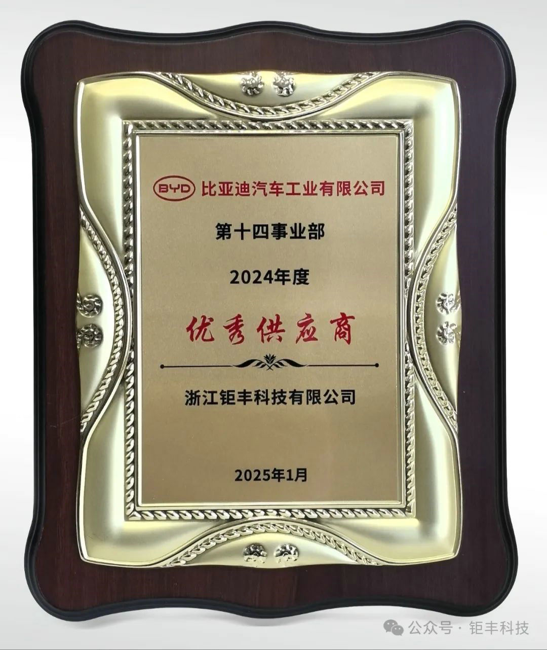 — 太阳成集团tyc122cc入口科技荣获比亚迪2024年度优秀供应商称号—