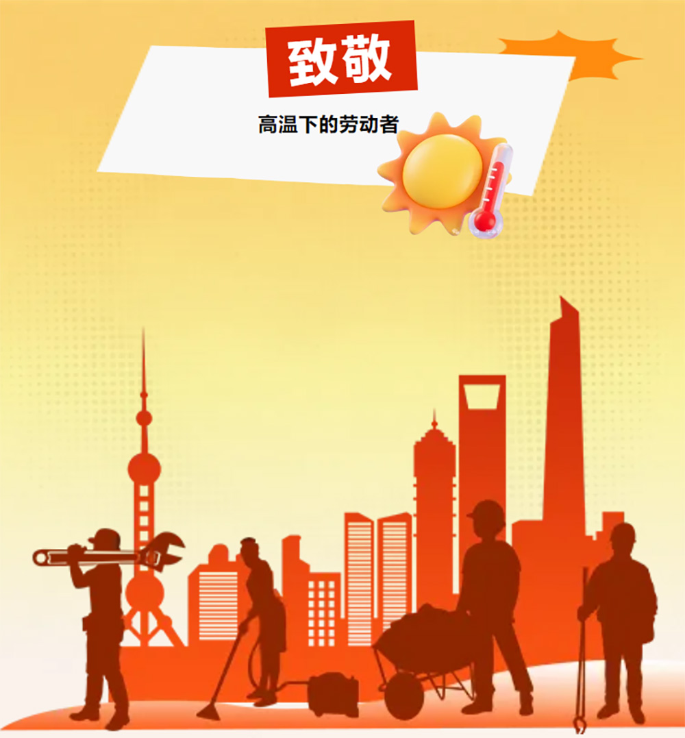 烈日当空,热浪翻涌,盛夏的炙烤模式已全面开启。在这持续高温的时节里,每一份坚守都值得被看见,每一份付出都值得被珍视。微信平台谨以此文,向奋战在各行各业一线的劳动者、向默默守护城市运转的每一位平凡英雄,以及始终与我们并肩同行的全体员工,致以最诚挚的敬意与问候!